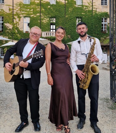 Composé de deux ou trois musiciens et une chanteuse, ces formules proposent une richesse sonore et une profondeur musicale, idéale pour créer une ambiance chaleureuse, rythmée et raffinée. Ces formules sont à composer en fonction de l'ambiance souhaitée ainsi que de vos préférences : Pianiste, Guitariste, Saxophoniste, Percussionniste... Que ce soit à l'occasion de cocktails, de réceptions ou d'événements professionnels, le répertoire Soul Jazz Pop à la fois doux et rythmé saura animer votre événement et charmer vos invités !